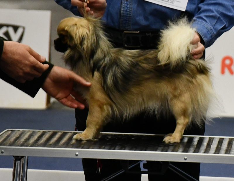 drobná fenka, a i když má výborný výraz a dobré proporce včetně zajímavého a líbivého zbarvení srsti a i dobrý pohyb, bude zřejmě její menší velikost pro výstavní kariéru poněkud problematická.